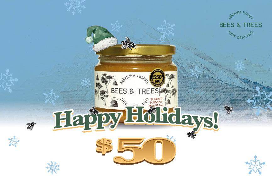 Our Digital Gift Cards are the perfect way to share delicious and authentic New Zealand Mānuka and Native honeys. We've made it easy to buy and use! Available in $50 and $100 values. If you would like to gift someone a Bees & Trees gift card, please forward the email to the recipient. *Gift cards are not included in any coupon codes and are excluded from our subscription service.