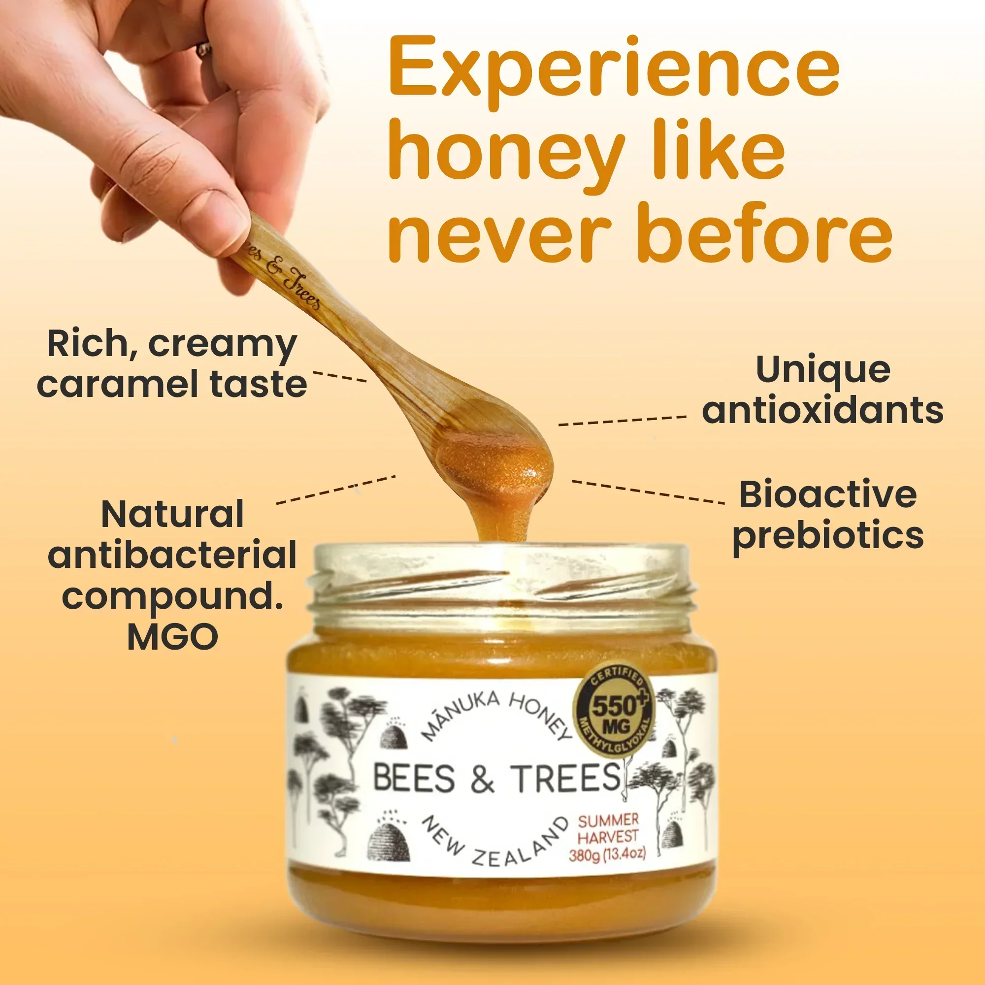 Discover the rich, golden indulgence of authentic New Zealand Manuka Honey with this thoughtfully curated gift set from Bees & Trees. Inside each box: