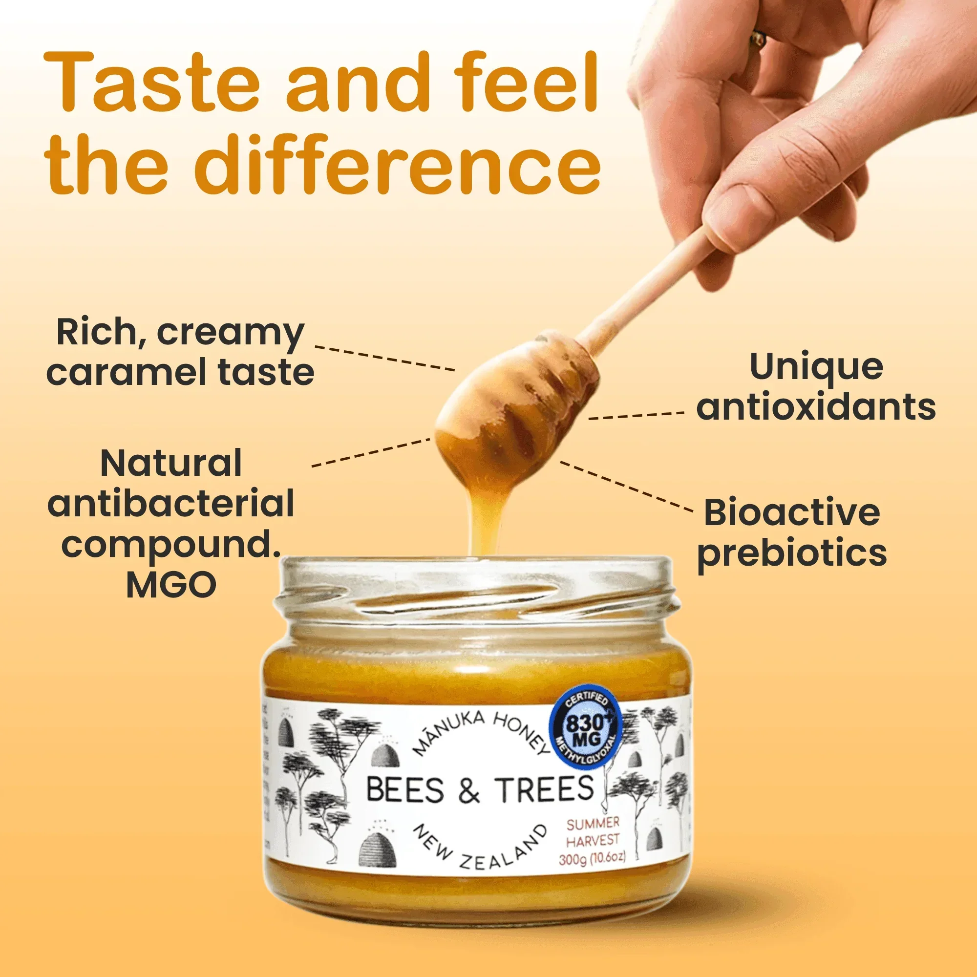 Mānuka Honey Founder’s Reserve 830+ MGO/kg | Our Founder’s Reserve Mānuka Honey offers an ultra-high 830+ MGO value, making it ideal for those seeking the most potent Mānuka honey. Renowned for its unique properties, Mānuka honey has been recognized for supporting overall wellness, including digestive health and immune system function. Our single-origin honey is sourced exclusively from the pristine Taranaki region and delivers unparalleled quality and potency. (300g/10.6oz glass jar)